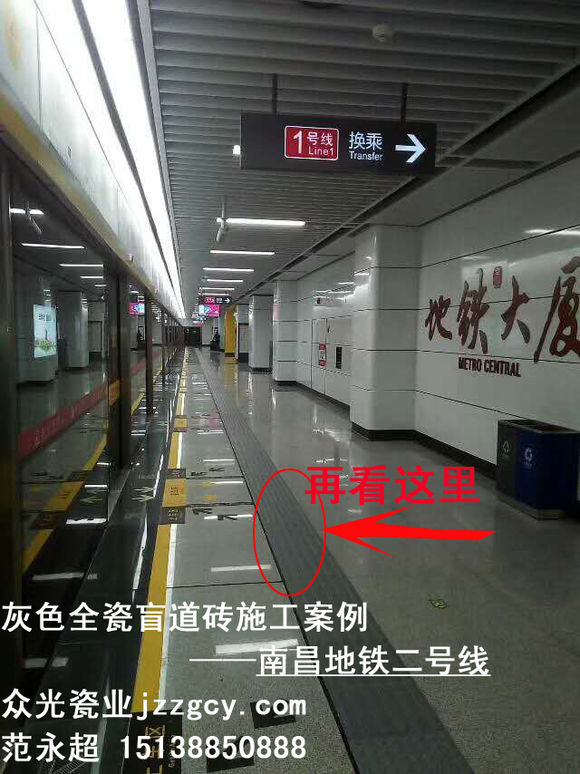 灰色全瓷盲道磚廠家 ——焦作市眾光耐酸瓷業(yè)有限公司,熱烈祝賀南昌地鐵二號線首通段峻工,8.18進入換乘新時代,開通儀式將在中建五局建設的地鐵大廈站隆重舉行,眾光瓷業(yè)全體員工祝開通儀式順利舉行!
